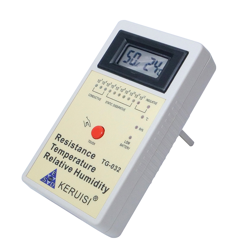 3.“湿度和温度会影响阻抗,所以必须测量”TG-032表面电阻测试仪可直接显示影响静电性能的相对湿度和温度。