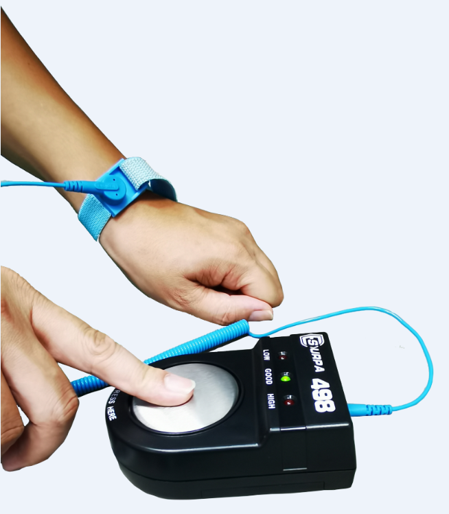 人工智能大量普及的工业环境下,虽然大量工作已被自动化设备完成,在生产过程中,还是存在很多必须用到人工操作的环节,而人体所携带的静电会对产品造成损坏,同时良好的接地也是保障工人安全的必要手段,SURPA 498便携式手腕带测试仪是通格公司研究改良的产品,用于快速检查接地系统和手腕带是否佩戴良好正常工作,避免静电对产品的损坏,降低不良率,同时保障工人安全